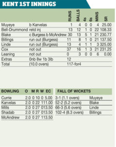 June 30, Canterbury Sussex 228-7 Kent 117-4 Sharks won by 11 runs (D/L) Toss: Kent, who elected to field A SUPERB...