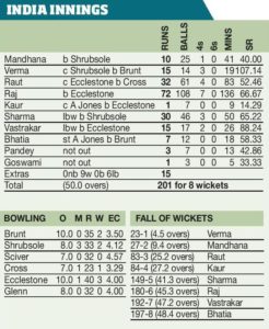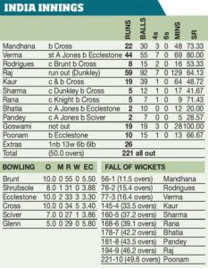 By Jeremy Blackmore History maker: India captain Mithali Raj Taking the lead: Nat Sciver top scored in England’s below-par 219 but...