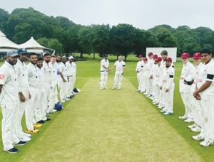 By Jonny Bray Tribute: The two teams line up EDGWARE and Birkenhead Park Cricket Clubs took part in a special 40-over...