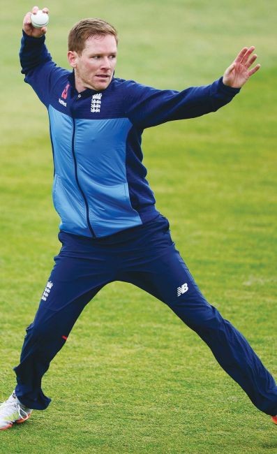 Eyes on the prize: Eoin Morgan warms up in training at Bristol yesterday PICTURE: Getty Images England’s Eoin Morgan gets ready...