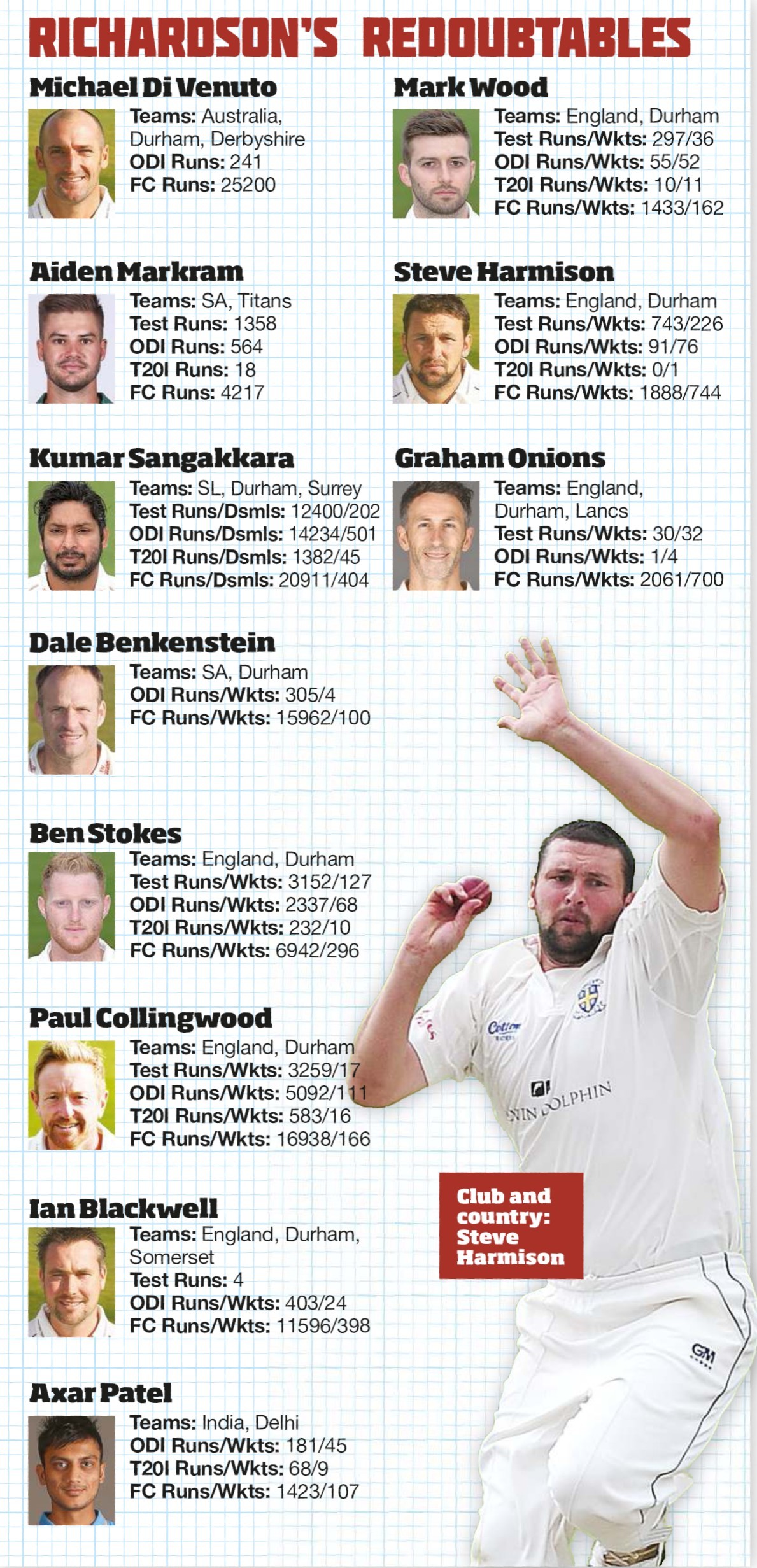 Michael Richardson, the Durham keeper, chooses his favourite XI from those he has played alongside 1. Michael Di Venuto He was...