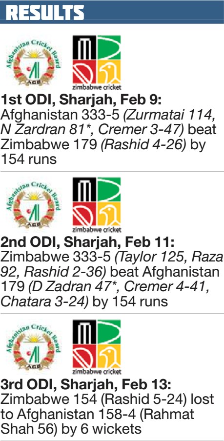 AFGHANISTAN v ZIMBABWE ODI ROUND-UP By Gordon Williams RASHID Khan’s third five-wicket ODI haul fired Afghanistan to victory over Zimbabwe by...