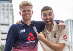 Game for a laugh: Mark Wood with Sam Billings at the launch of NatWest’s No boundaries campaign Right: Bowling against South...