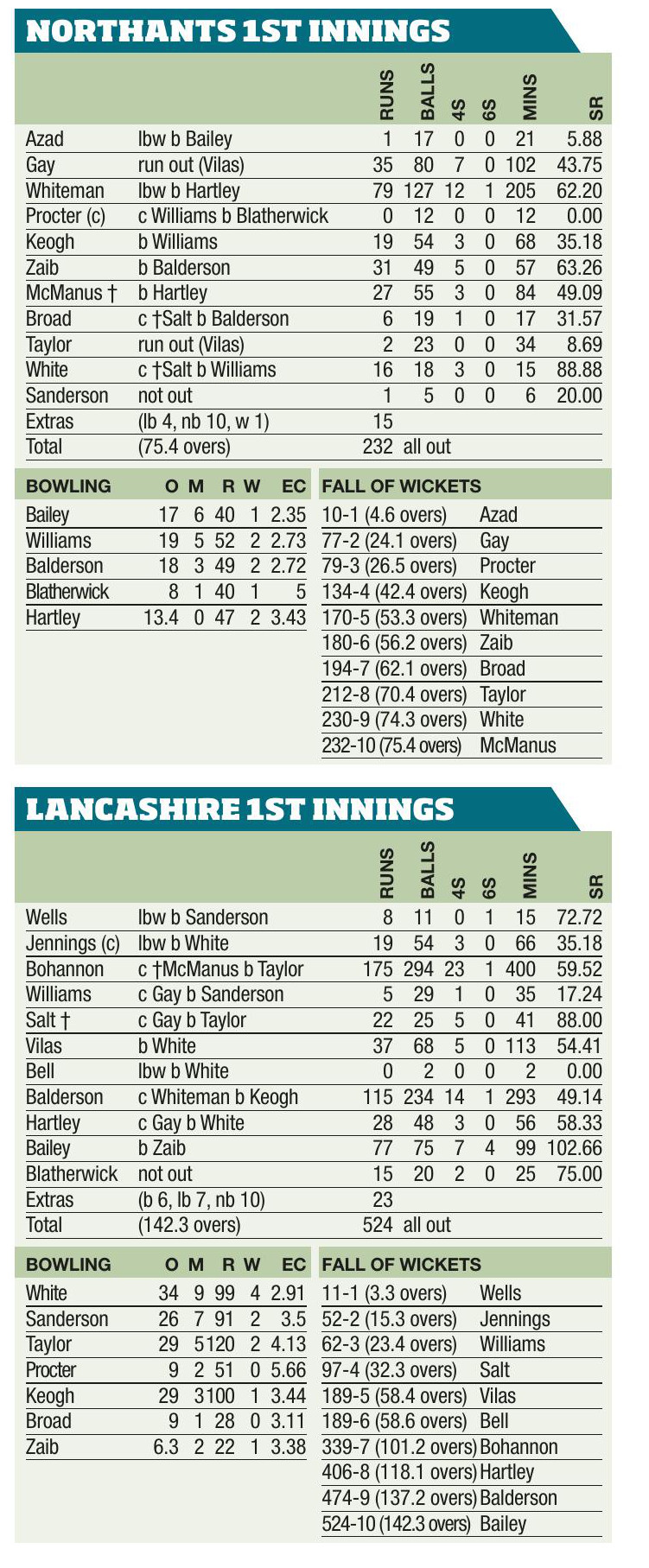 Rampant Lancs heap misery on poor Northants