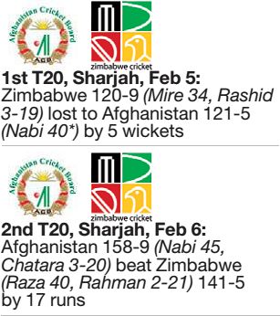 AFGHANISTAN v ZIMBABWE T20 ROUND-UP By Seth Francis AFGHANISTAN head into the ODI series with huge momentum having whitewashed Zimbabwe in...