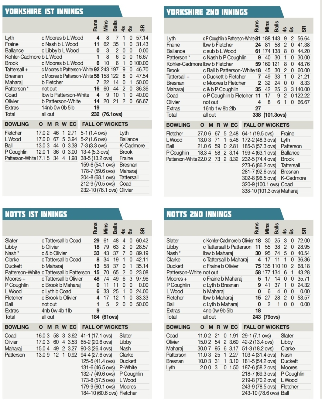 Only Somerset and Yorkshire are still unbeaten in Division One of the County Championship
