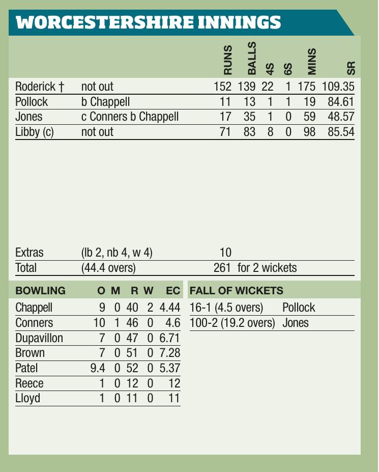 By Nigel Gardner August 15, Repton School Ground Derbyshire Falcons 315 Worcestershire Rapids 316-6 Worcestershire Rapids won by 4 wickets Toss:...