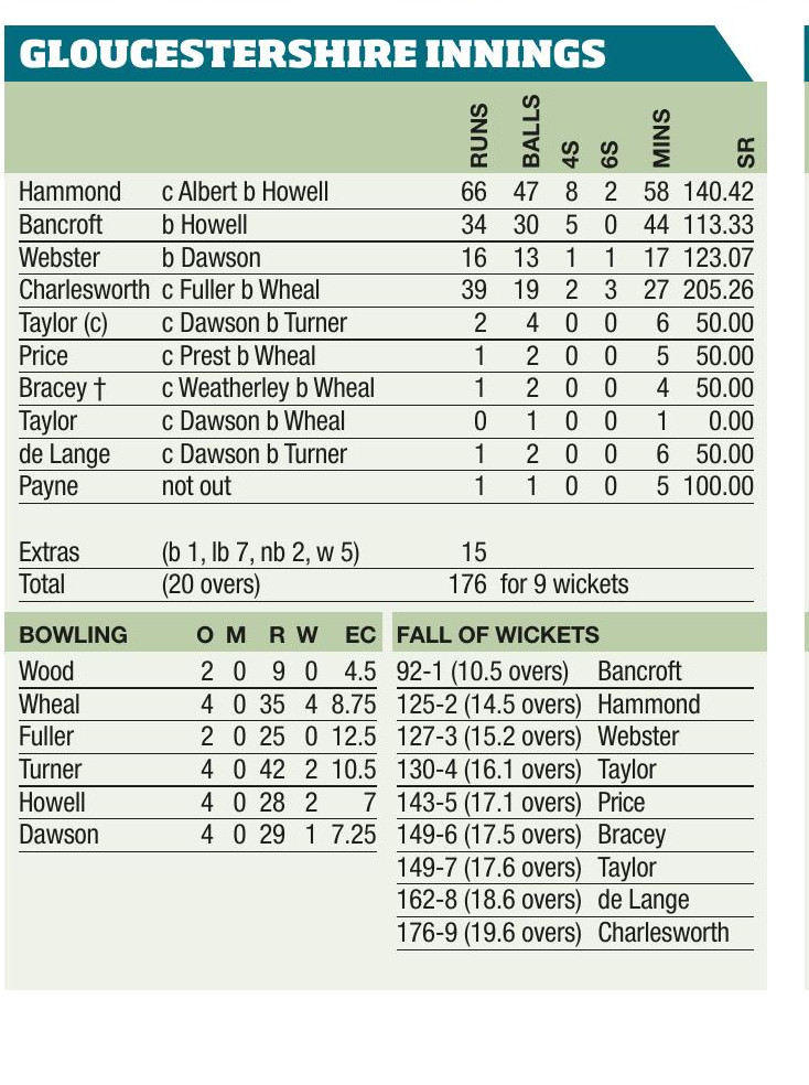 By Alex Smith June 6, Utilita Bowl, Southampton Gloucestershire 119 Hampshire Hawks 121-3 Hampshire Hawks won by 7 wickets Toss: Gloucestershire...