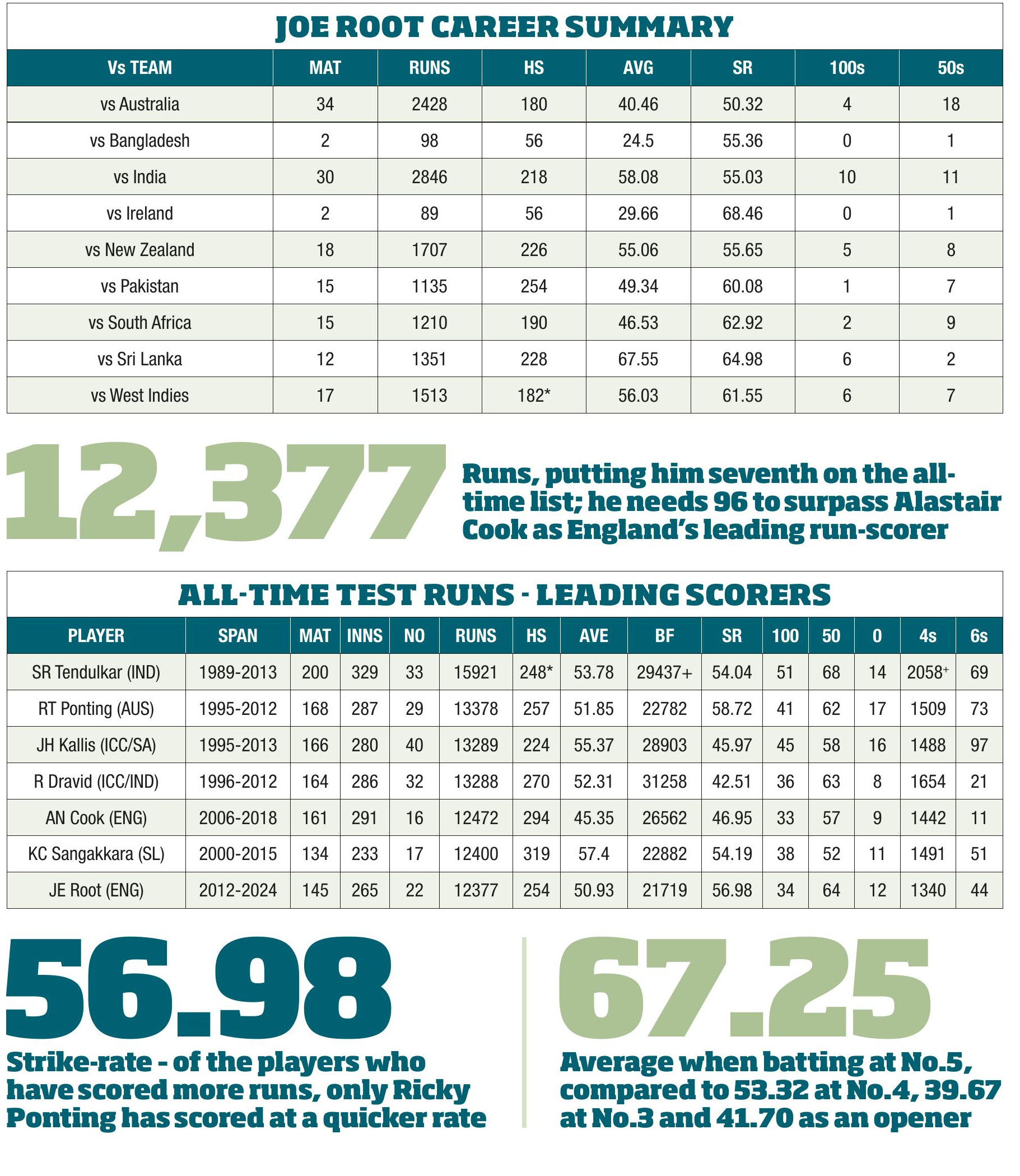 Joe Root’s brace of hundreds at Lord’s took him past Sir Alastair Cook as England’s all-time leading Test centurion. Here we...