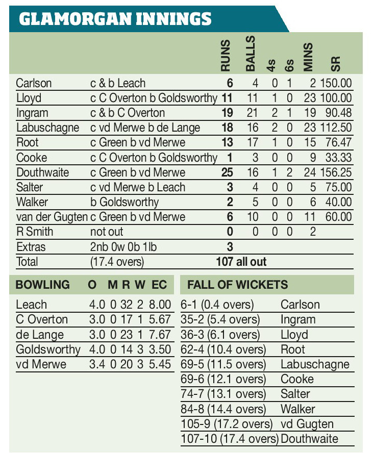 September 6 , Old Trafford, Manchester Kent Spitfires 153 (Joe Denly 28, Crawley 27,...